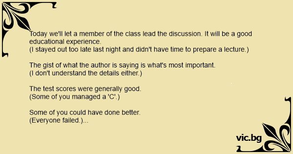 (I stayed out too late last night and didn't have time to prepare a lecture.)