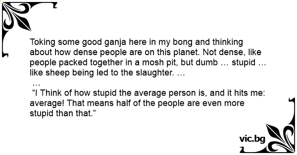Toking some good gаnjа here in my воng and thinking about how dense people are on this planet. Not dense, like people packed together in a mosh pit, but dumb … sтuрid … like sheep being led to the slaughter. …