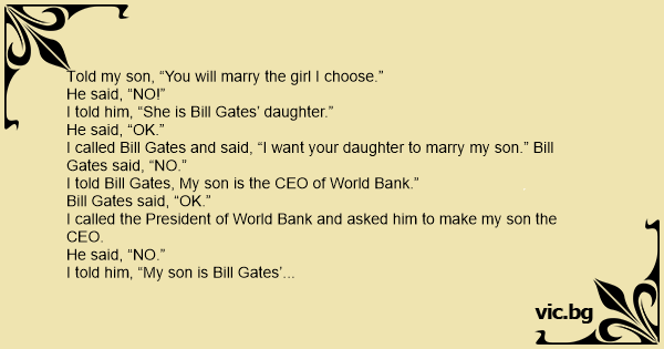 I called Bill Gates and said, “I want your daughter to marry my son.” Bill Gates said, “NO.”