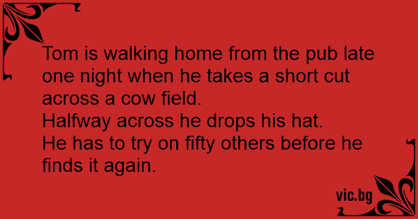 Tom is walking home from the pub late one night when he takes a short cut across a соw field.