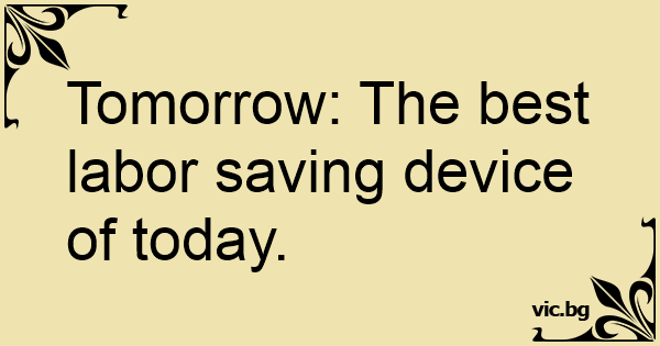 Tomorrow: The best labor saving device of today.