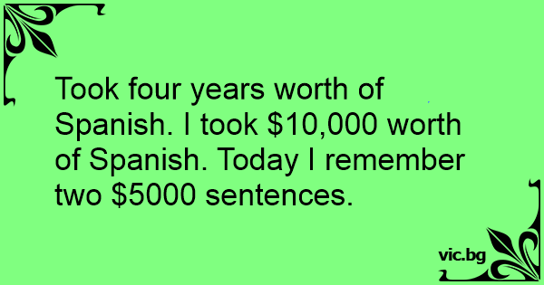 Took four years worth of Spanish. I took $10,000 worth of Spanish. Today I remember two $5000 sentences.
