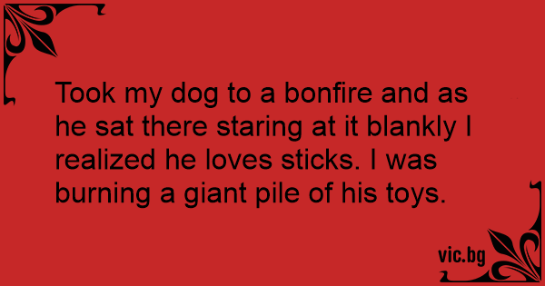 Took my dog to a bonfire and as he sat there staring at it blankly I realized he loves sticks. I was burning a giant pile of his toys.