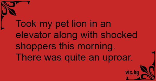 Took my pet lion in an elevator along with shocked shoppers this morning.