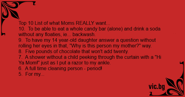 9. To have my 14 year-old daughter answer a question without rolling her eyes in that, "Why is this person my mother?" way.