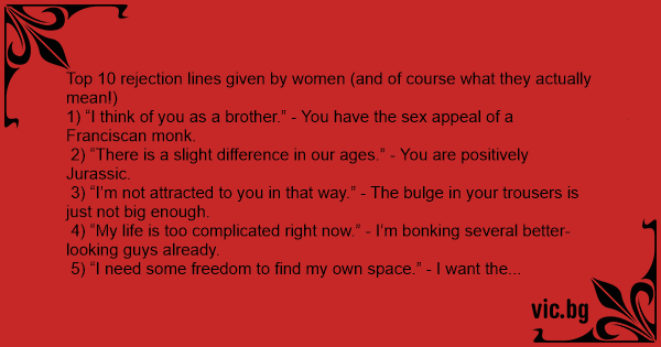 Top 10 rejection lines given by women (and of course what they actually mean!)
