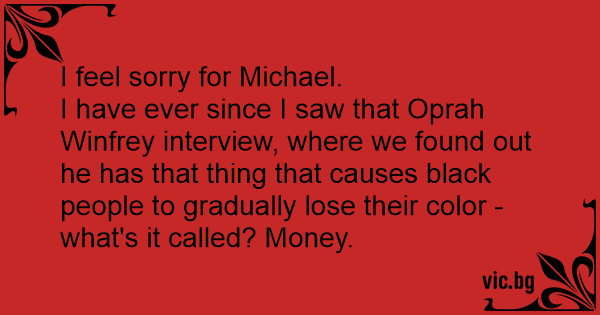 I have ever since I saw that Oprah Winfrey interview, where we found out he has that thing that causes black people to gradually lose their color - what's it called? Money.