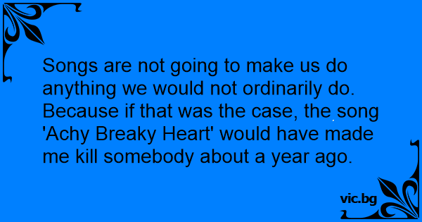 Because if that was the case, the song 'Achy Breaky Heart' would have made me кill somebody about a year ago.