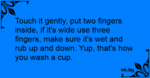 Touch it gently, put two fingers inside, if it's wide use three fingers, make sure it's wet and rub up and down. Yup, that's how you wash a cup.