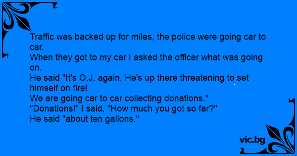 He said "It's O.J. again. He's up there threatening to set himself on fire!