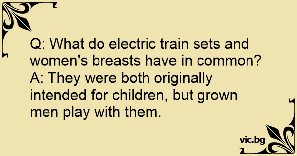 – Varför är kvinnobröst som ett elektriskt tågset på julafton? – De är båda ämnade för barn, men det är männen som leker med dem.