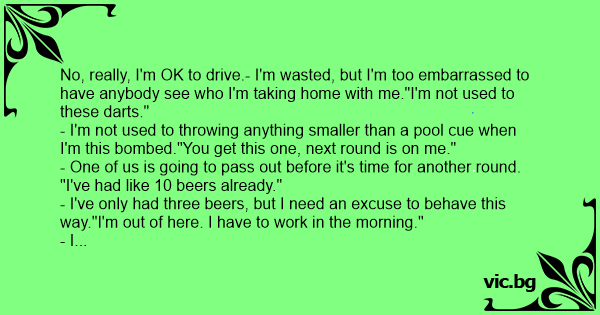 No, really, I'm OK to drive.- I'm wasted, but I'm too embarrassed to have anybody see who I'm taking home with me."I'm not used to these darts."
