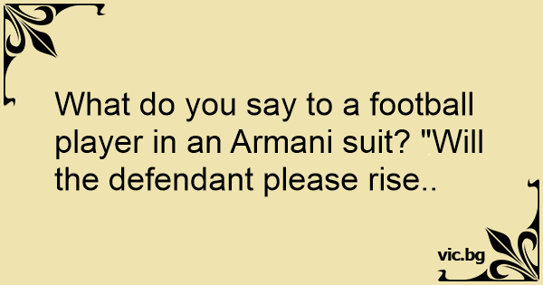 What do you say to a football player in an Armani suit? "Will the defendant please rise..