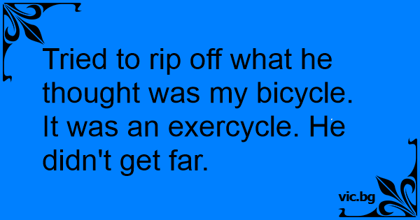 Tried to rip off what he thought was my bicycle. It was an exercycle. He didn't get far.