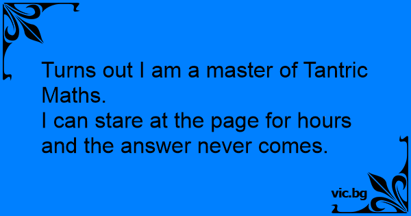 Turns out I am a master of Tantric Maths.