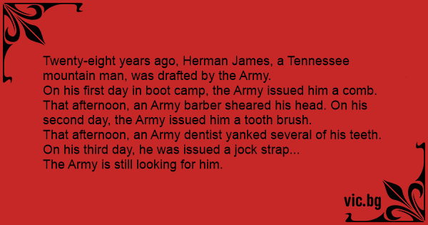 Twenty-eight years ago, Herman James, a Tennessee mountain man, was drafted by the Army.