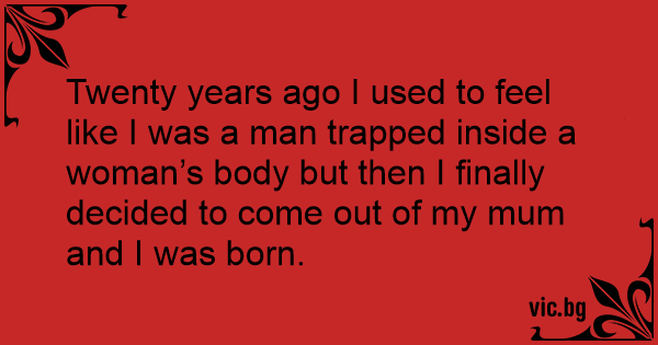Twenty years ago I used to feel like I was a man trapped inside a woman’s body but then I finally decided to come out of my mum and I was born.
