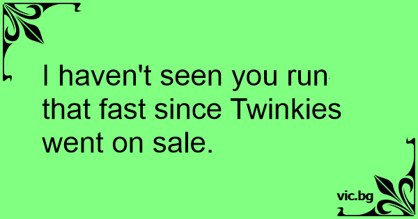I haven't seen you run that fast since Twinkies went on sale.