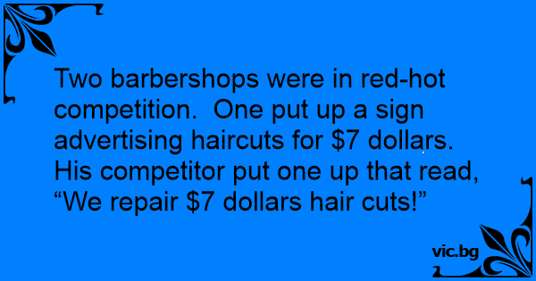 Two barbershops were in red-hot competition. One put up a sign advertising haircuts for $7 dollars.
