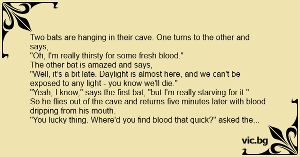 "Yeah, I know," says the first bat, "but I'm really starving for it."