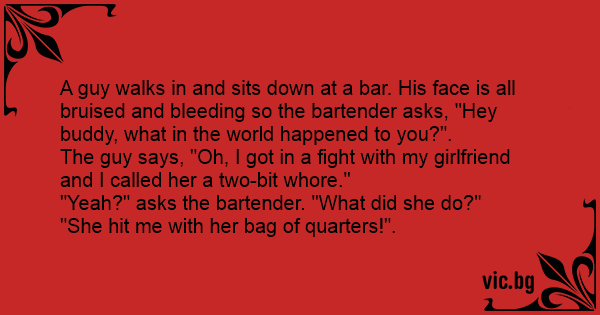 The guy says, "Oh, I got in a fight with my girlfriend and I called her a two-bit whоrе."
