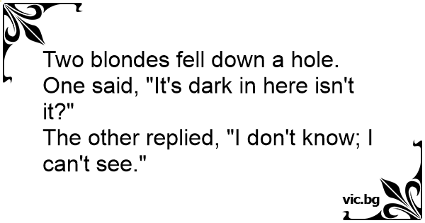 Two blondes fell down a hole. One said, "It's dark in here isn't it?"
