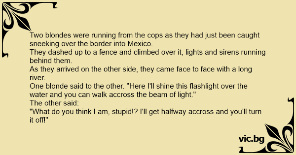 One blonde said to the other. "Here I'll shine this flashlight over the water and you can walk accross the beam of light."