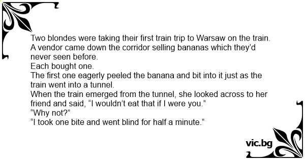 The first one eagerly peeled the banana and bit into it just as the train went into a tunnel.