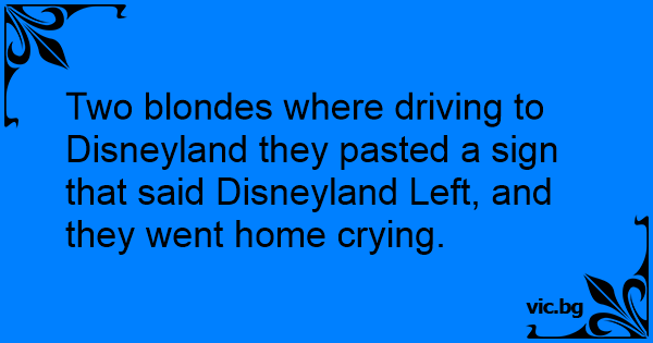 Two blondes where driving to Disneyland they pasted a sign that said Disneyland Left, and they went home crying.