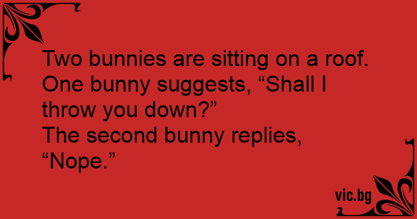 One bunny suggests, “Shall I throw you down?”