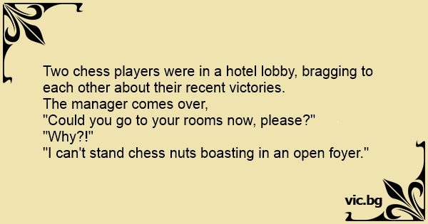 Two chess players were in a hotel lobby, bragging to each other about their recent victories.