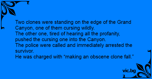 Two clones were standing on the edge of the Grand Canyon, one of them cursing wildly.