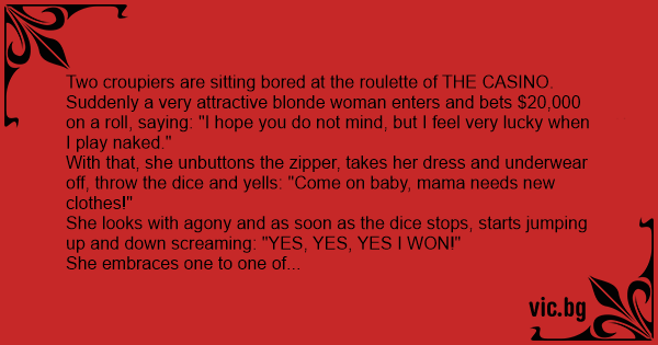 Suddenly a very attractive blonde woman enters and bets $20,000 on a roll, saying: "I hope you do not mind, but I feel very lucky when I play nакеd."