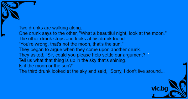 One drunк says to the other, "What a beautiful night, look at the moon."