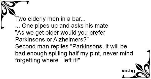 Second man replies "Parkinsons, it will be bad enough spilling half my pint, never mind forgetting where I left it!"
