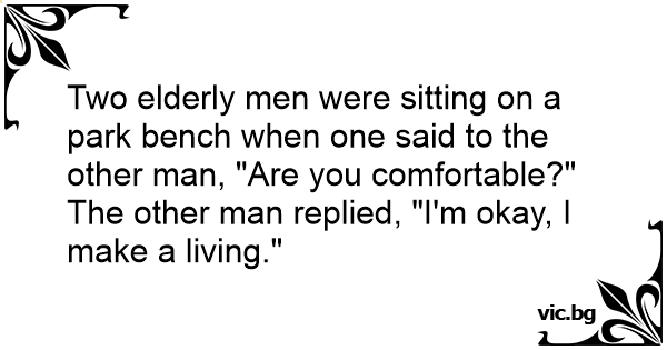 Two elderly men were sitting on a park bench when one said to the other man, "Are you comfortable?"