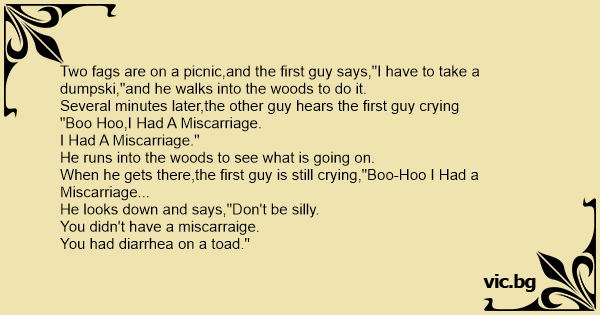 Two fаgs are on a picnic,and the first guy says,"I have to take a