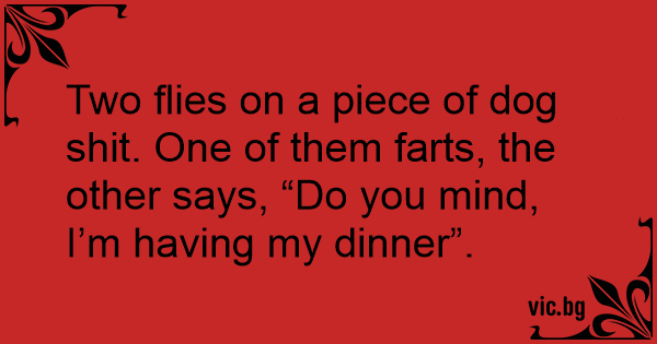 Two flies on a piece of dog shiт. One of them farts, the other says, “Do you mind, I’m having my dinner”.