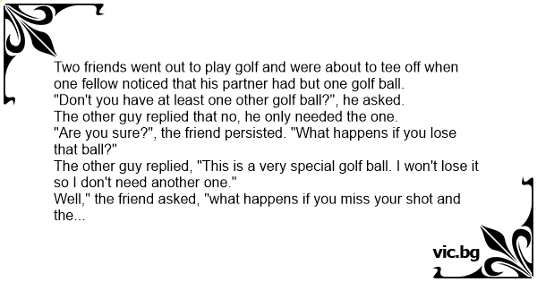 The other guy replied, "This is a very special golf ball. I won't lose it so I don't need another one."