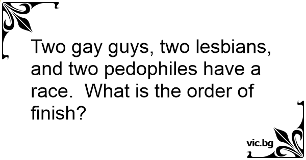 Two gаy guys, two lеsвiаns, and two pedophiles have a race. What is the order of finish?
