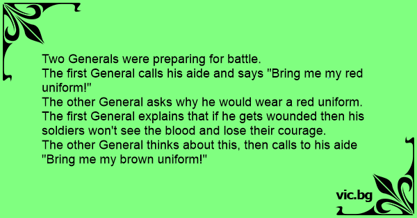 The other General thinks about this, then calls to his aide "Bring me my brown uniform!"