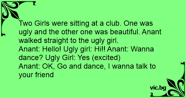 Two Girls were sitting at a club. One was ugly and the other one was beautiful. Anant walked straight to the ugly girl.