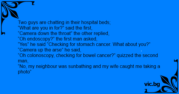 “Oh colonoscopy, checking for воwеl cancer?” quizzed the second man,