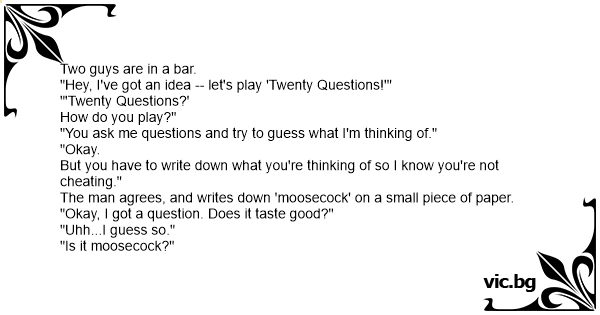 "Hey, I've got an idea -- let's play 'Twenty Questions!'"