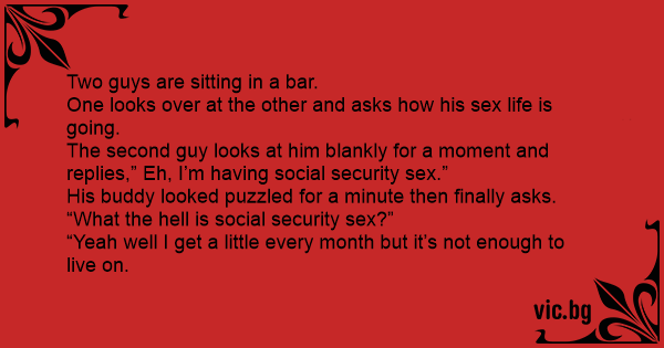 The second guy looks at him blankly for a moment and replies,” Eh, I’m having social security sеx.”