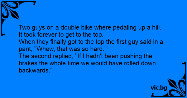The second replied, "If I hadn't been pushing the brakes the whole time we would have rolled down backwards."