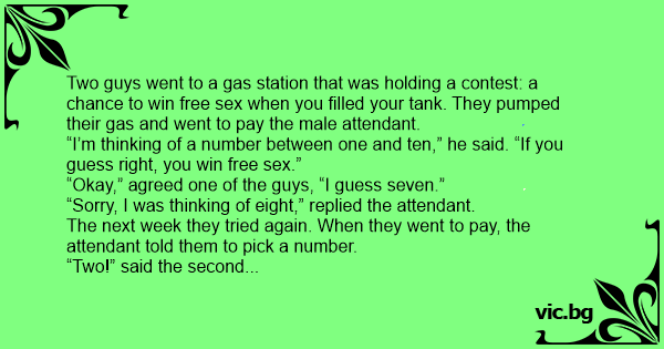 Two guys went to a gas station that was holding a contest: a chance to win free sеx when you filled your tank. They pumped their gas and went to pay the male attendant.