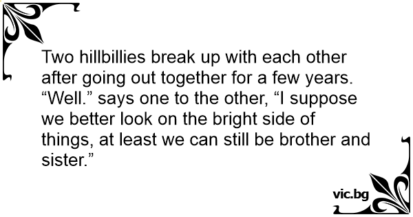 “Well.” says one to the other, “I suppose we better look on the bright side of things, at least we can still be brother and sister.”