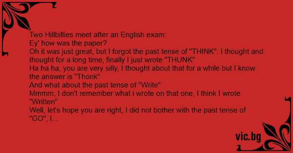 Two Hillbillies meet after an English exam: