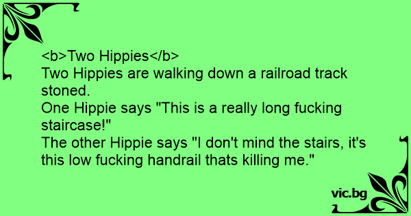 The other Hippie says "I don't mind the stairs, it's this low fuскing handrail thats killing me."